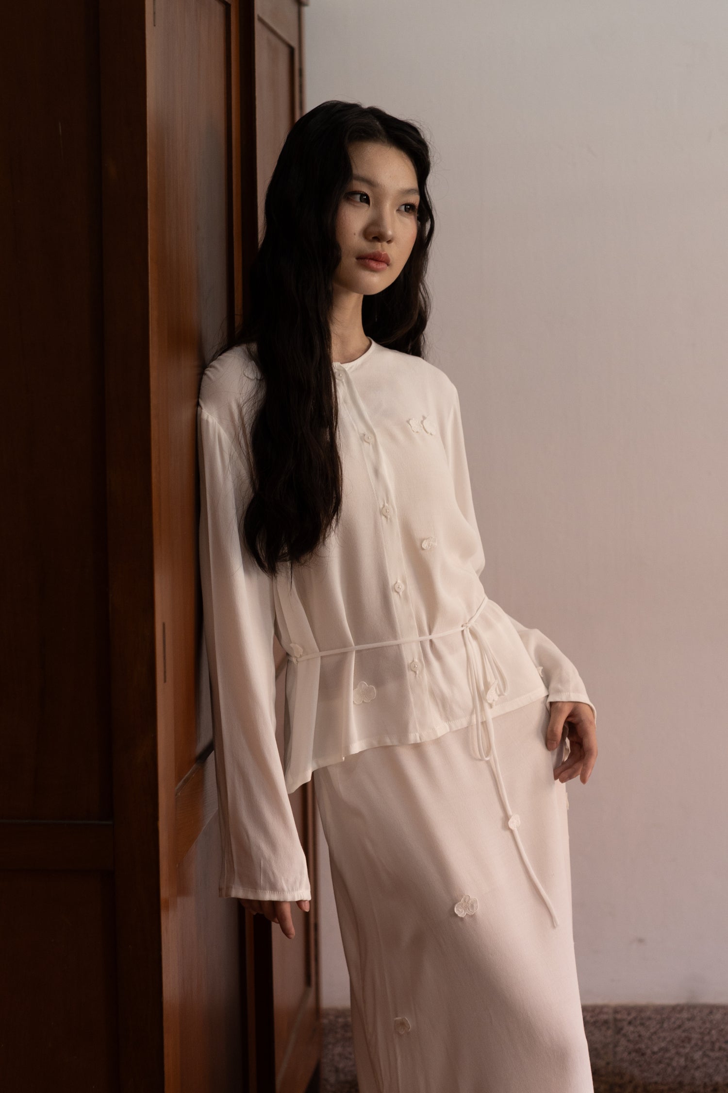 RUBI LONG SLEEVE TOP, SHEER IVORY