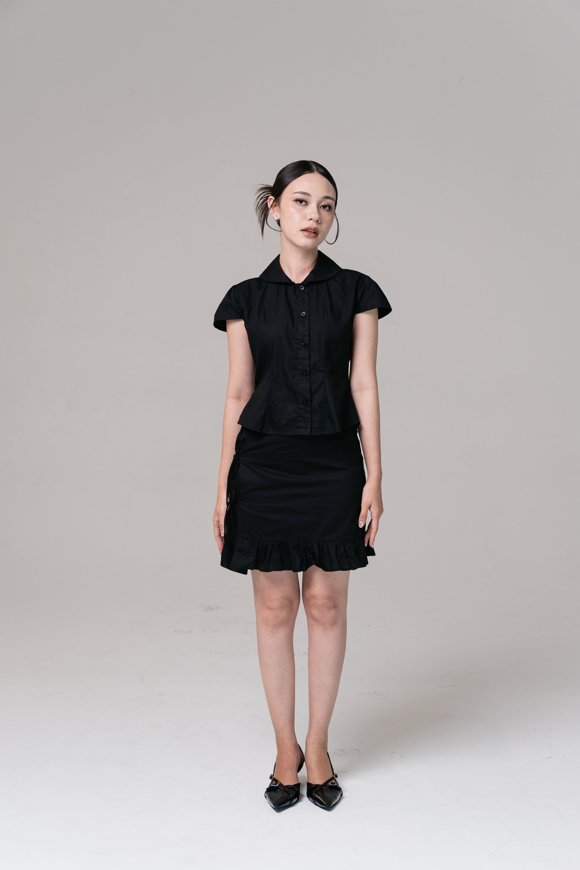 Made from 100% cotton, the Juno Top is a short-sleeve shirt featuring a classic Peter Pan collar. Its timeless silhouette blends a structured look with an easy, wearable feel—perfect for dressing up or down.
