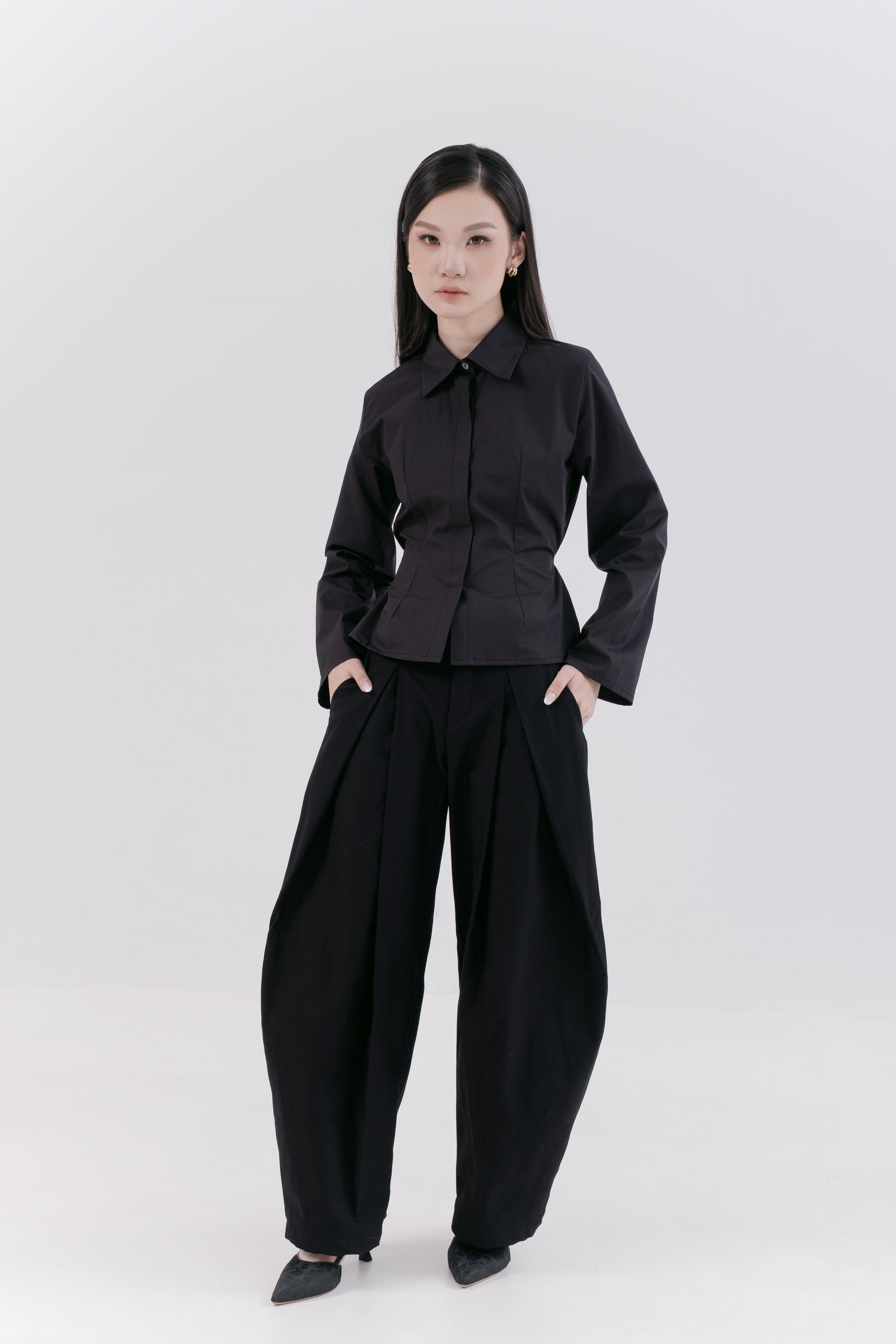 Made from 100% cotton, the Boa Barrel Pants offer a structured yet comfortable fit with a pleated front, belt loops and sculpted barrel silhouette