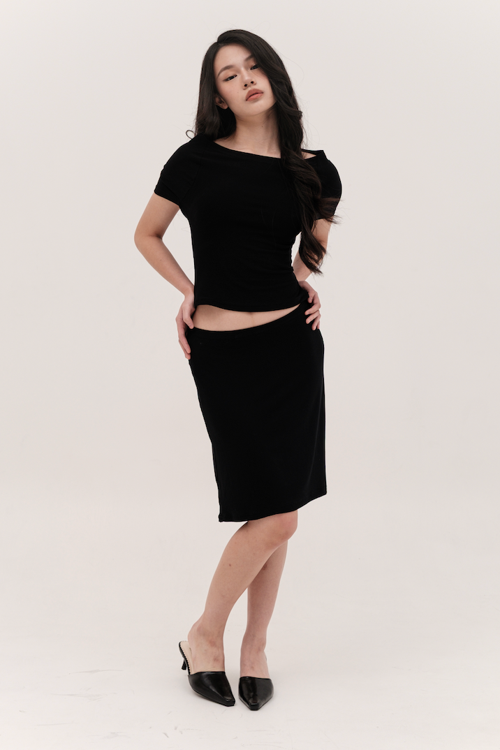 SORA MIDI SKIRT, BLACK