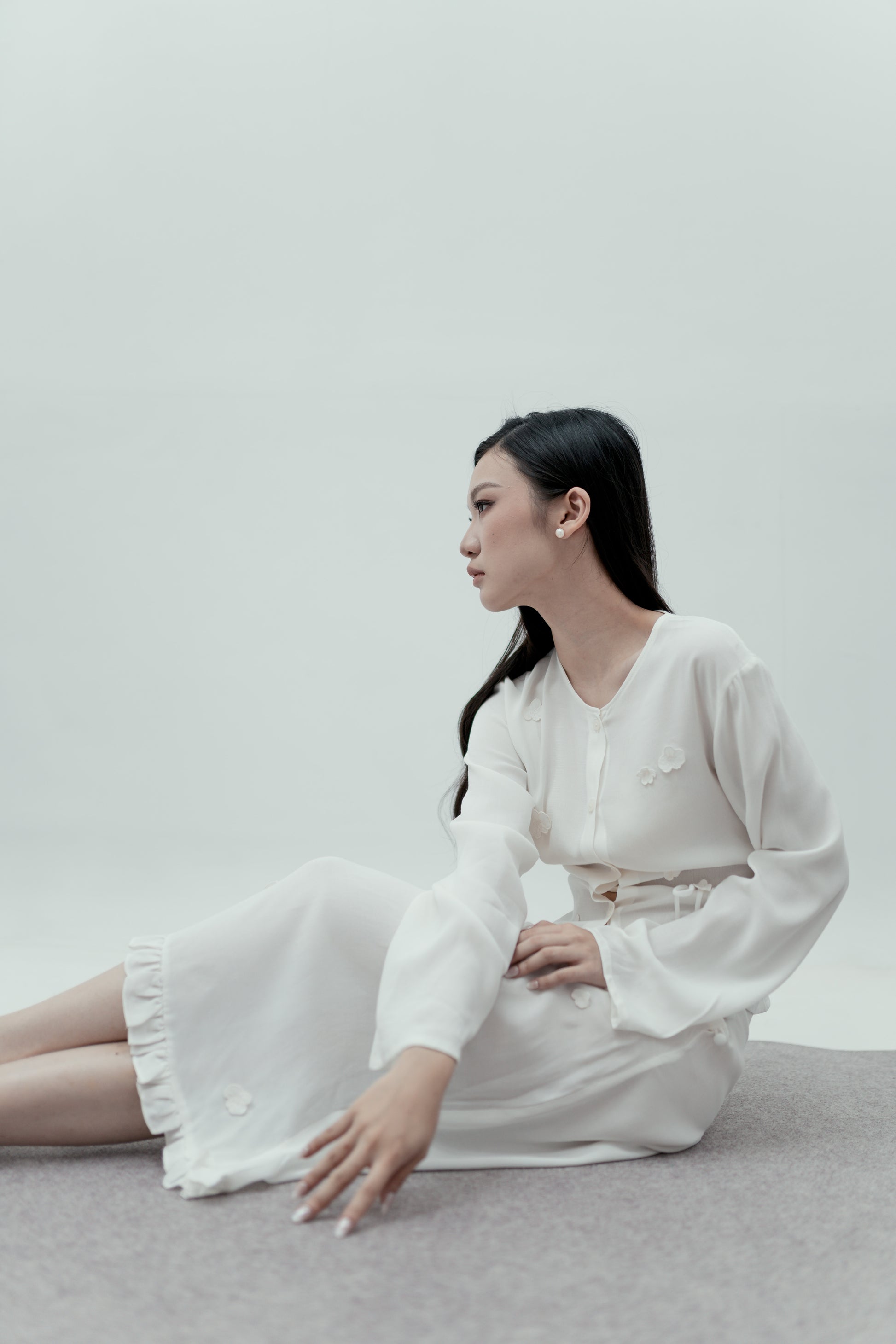 The Rubi Midi Skirt is cut from 100% certified FSC rayon in ivory and detailed with floral embroideries along its relaxed silhouette. A ruffled hemline adds gentle movement, while a side button closure completes the design. Easy yet refined, it pairs seamlessly with the Rubi Long Sleeve or stands on its own.