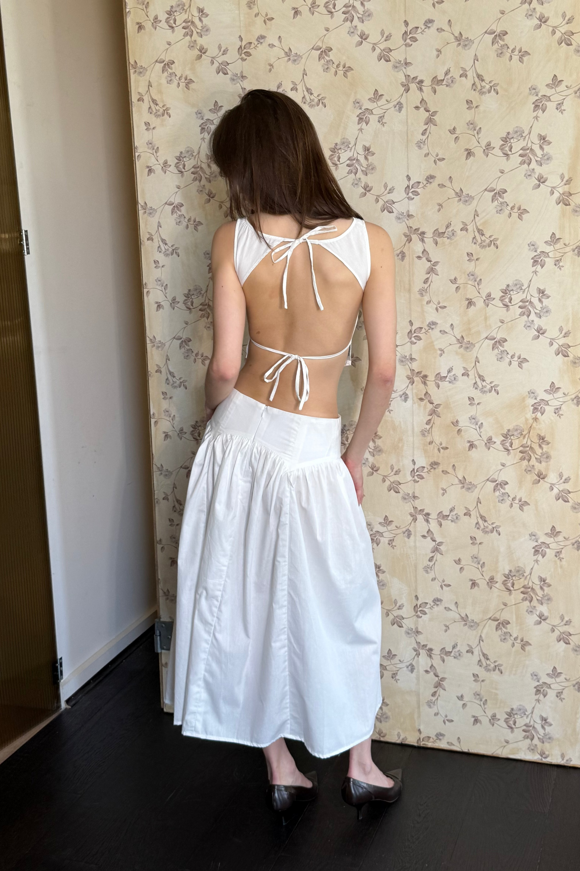 A backless design with an adjustable tie-back for a custom fit. Simple, flattering, and versatile, it’s perfect for dressing up or down. Pair it with the Soma Skirt for a complete look. Made from 100% cotton.